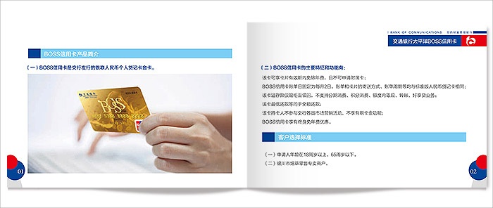 為交通銀行推廣太平洋BOSS信用卡設(shè)計(jì)宣傳冊(cè)頁。